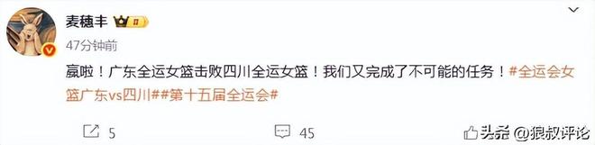 籃球評論員連睿發文:“恭喜廣東,男女成年組都把冠軍拿下。中國女籃在換血,浪尖需要更多的弄潮兒盡快嶄露頭角,縱風逐浪。必須要帶著疑問句式感歎上一句,上哪兒還能再找出來像大靜這模子的球員啊…..再來一個吧。”